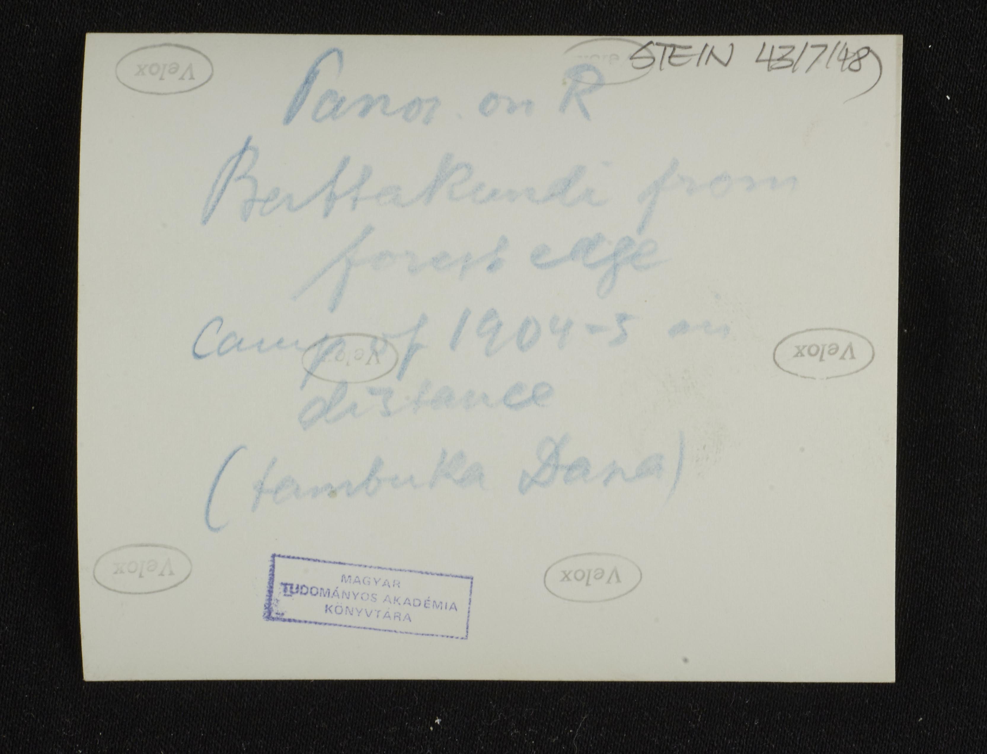 Stein, Aurél (MEGHATÁROZATLAN): Panorama on right, Battakundi from forest edge camp of 1904-5 in distance (tambuka Dana). [H.8]. (Publikálatlan) (1942)