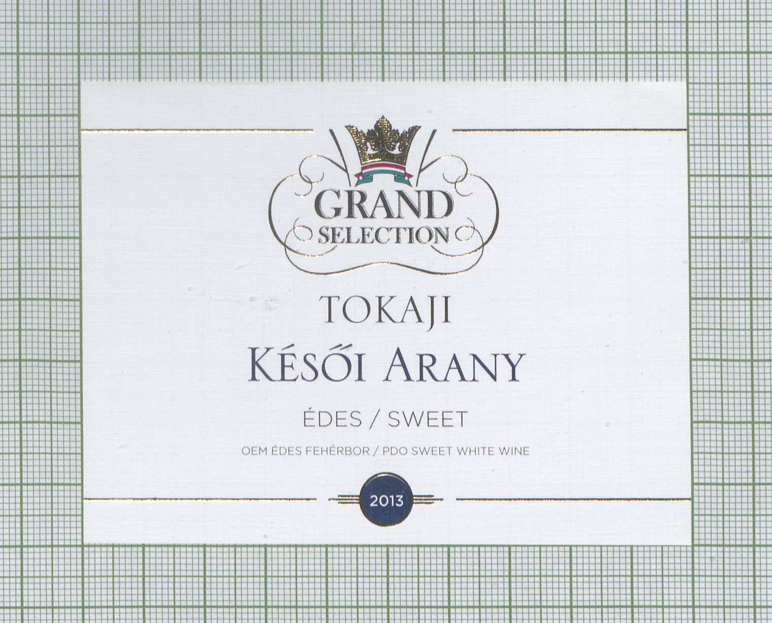 Bihari, Sándor (Digitalizáló): Grand Selection Tokaji Késői Arany Édes / Sweet OEM Édes Fehérbor PDO Sweet White Wine 2013. (Publikálatlan) (2023)