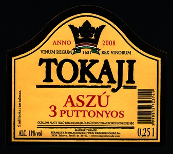 Kun, Zsanett (Digitalizáló): 2008-as 3 puttonyos tokaji aszú boroscímke a Tokaj Kereskedőház Zrt.-től. (Publikálatlan) (2024)