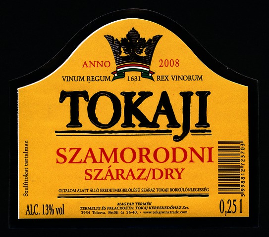 Bortípus: szamorodni; Termelő neve: Tokaj Kereskedőház Zrt.; Termelő címe: 3934 Tolcsva, Petőfi út 36-40.; Évjárat: 2008; színes címke