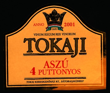Kun, Zsanett (Digitalizáló): 2001-es 4 puttonyos tokaji aszú boroscímke a Tokaj Kereskedőház Rt.-től. (Publikálatlan) (2024)