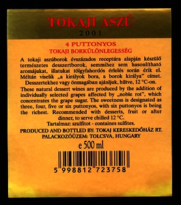2001-es 4 puttonyos tokaji aszú boroscímke a Tokaj Kereskedőház Rt.-től