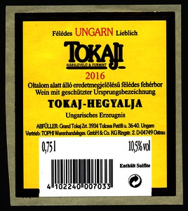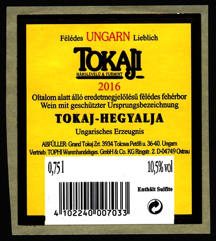 Kun, Zsanett (Digitalizáló): 2016-os tokaji hárslevelű & furmint boroscímke a Grand Tokaj Zrt.-től. (Publikálatlan) (2024)