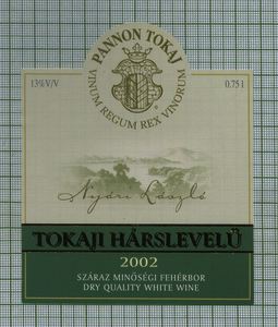 Bihari, Sándor (Digitalizáló): Pannon Tokaj Vinum Regnum Rex Vinorum 13%V/V 0,75 l Nyári László Tokaji Hárslevelű 2002 Száraz Minőségi Fehérbor Dry Quality White Wine. (Publikálatlan) (2023)