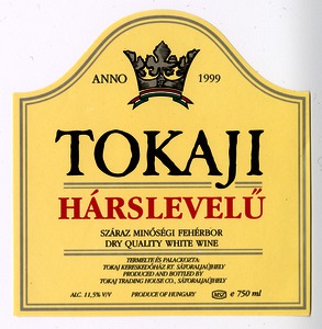 Bortípus: hárslevelű; Termelő neve: Tokaj Kereskedőház Rt.; Termelő címe: Sátoraljaújhely; Évjárat: 1999; színes címke