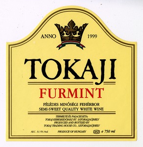 Bortípus: furmint; Termelő neve: Tokaj Kereskedőház Rt.; Termelő címe: Sátoraljaújhely; Évjárat: 1999; színes címke