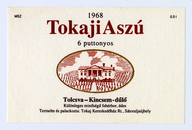 Kun, Zsanett (Digitalizáló): 1968-as 6 puttonyos tokaji aszú boroscímke a Tokaj Kereskedőház Rt.-től. (Publikálatlan) (2024)