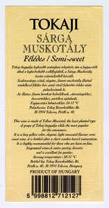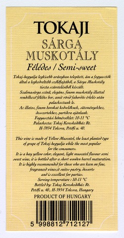 Kun, Zsanett (Digitalizáló): 2001-es tokaji félédes sárga muskotály boroscímke a Tokaj Kereskedőház Rt.-től. (Publikálatlan) (2024)
