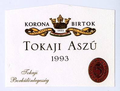 Kun, Zsanett (Digitalizáló): 1993-as 5 puttonyos tokaji aszú boroscímke a Tokaj Kereskedőház Rt.-től. (Publikálatlan) (2024)