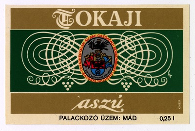 Bortípus: aszú; Termelő neve: Tokajhegyaljai Állami Gazdasági Borkombinát; Termelő címe: Sátoraljaújhely; színes címke