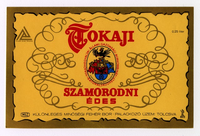Kun, Zsanett (Digitalizáló): Tokaji édes szamorodni boroscímke a Tokajhegyaljai Állami Gazdasági Borkombináttól. (Publikálatlan) (2024)