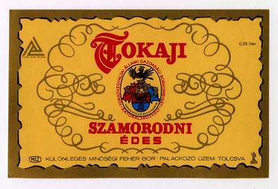 Bortípus: szamorodni; Termelő neve: Tokajhegyaljai Állami Gazdasági Borkombinát; Termelő címe: Sátoraljaújhely; színes címke