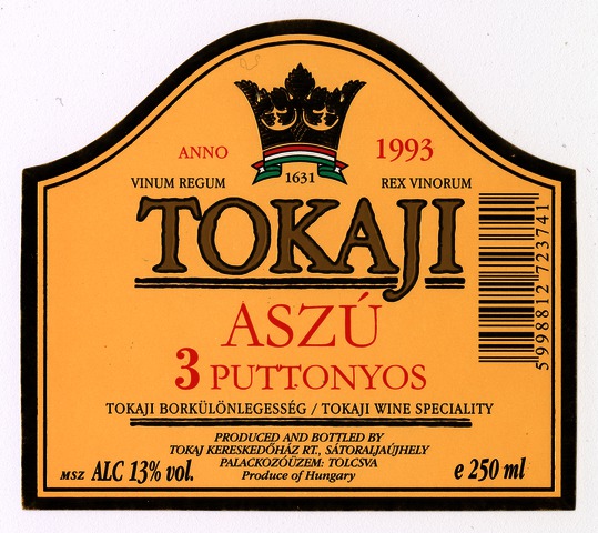 Kun, Zsanett (Digitalizáló): 1993-as 3 puttonyos tokaji aszú boroscímke a Tokaj Kereskedőház Rt.-től. (Publikálatlan) (2024)