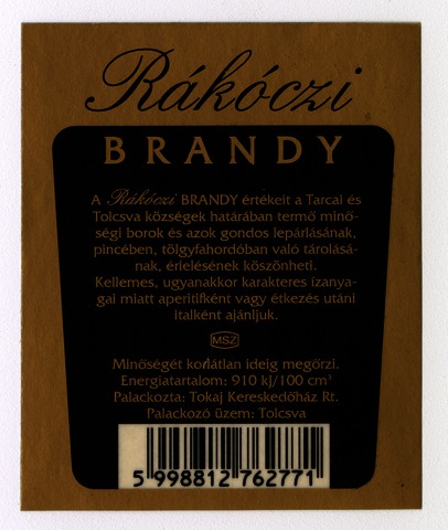 Italtípus: brandy; Termelő neve: Tokaj Kereskedőház Rt.; színes címke