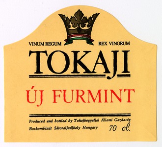 Bortípus: új furmint; Termelő neve: Tokajhegyaljai Állami Gazdaság Borkombinát; Termelő címe: Sátoraljaújhely; színes címke