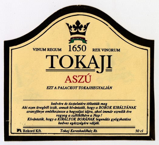 Bortípus: aszú; Termelő neve: Tokaj Kereskedőház Rt.; színes címke