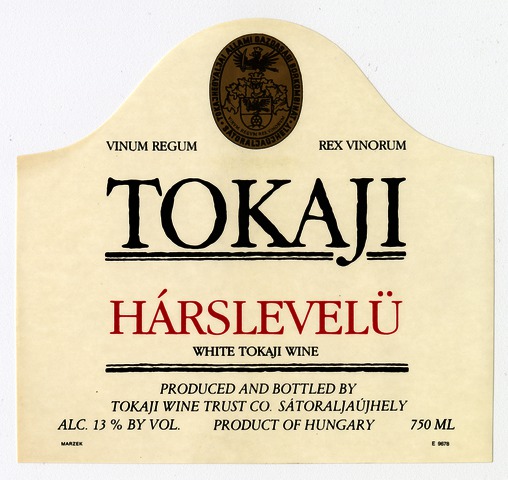 Bortípus: hárslevelű; Termelő neve: Tokajhegyaljai Állami Gazdasági Borkombinát; Termelő címe: Sátoraljaújhely; színes címke