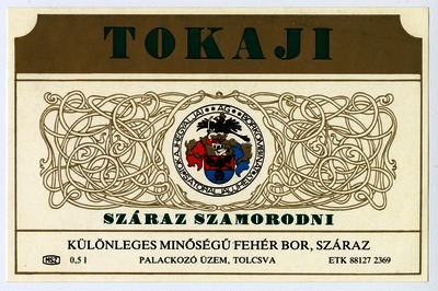 Bortípus: szamorodni; Termelő neve: Tokajhegyaljai Állami Gazdasági Borkombinát; Termelő címe: Sátoraljaújhely; színes címke