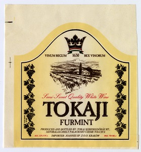 Bortípus: furmint; Termelő neve: Tokaj Kereskedőház Rt.; Termelő címe: Tolcsva; színes címke