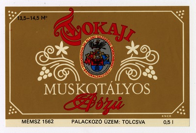 Kun, Zsanett (Digitalizáló): Tokaji muskotályos aszú boroscímke Tokajhegyaljai Állami Gazdasági Borkombináttól. (Publikálatlan) (2024)