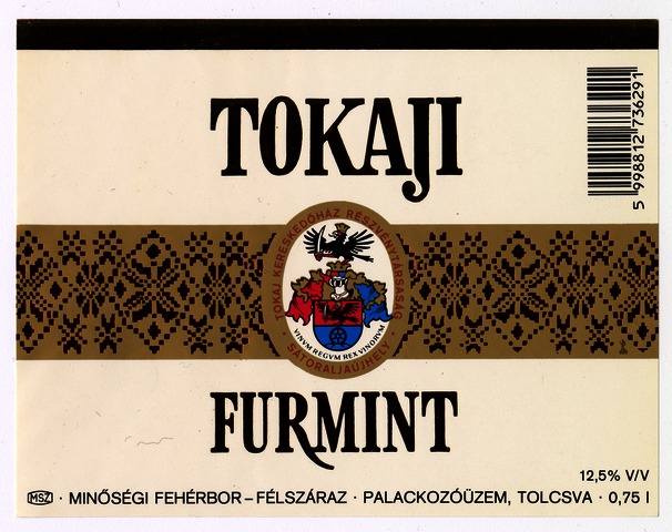 Bortípus: furmint; Termelő neve: Tokaj Kereskedőház Részvénytársaság; Termelő címe: Sátoraljaújhely; színes címke