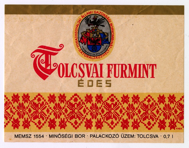 Bortípus: furmint; Termelő neve: Tokajhegyaljai Állami Gazdasági Borkombinát; Termelő címe: Sátoraljaújhely; színes címke