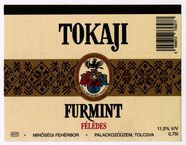 Bortípus: furmint; Termelő neve: Tokaj Kereskedőház Részvénytársaság; Termelő címe: Sátoraljaújhely; színes címke