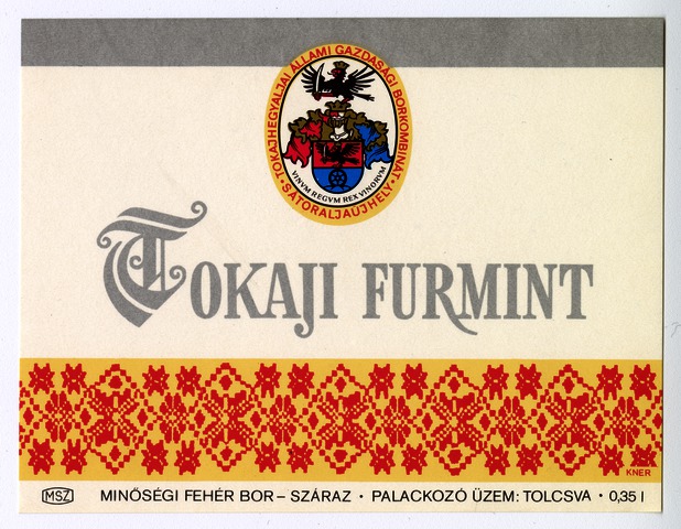 Bortípus: furmint; Termelő neve: Tokajhegyaljai Állami Gazdasági Borkombinát; Termelő címe: Sátoraljaújhely; színes címke