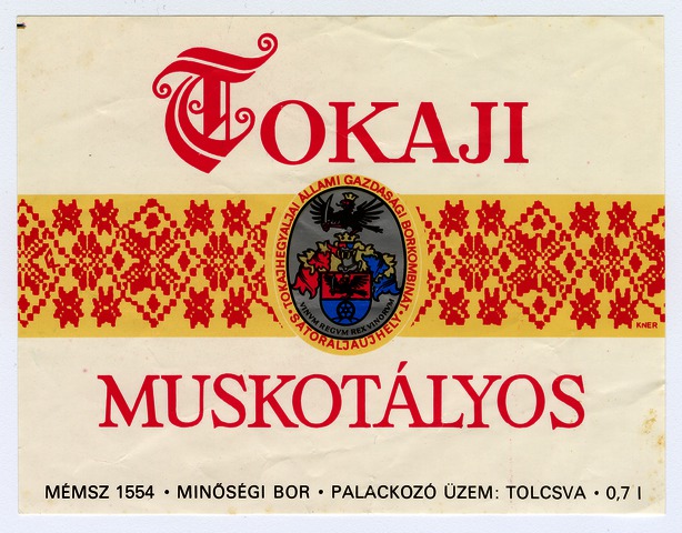 Kun, Zsanett (Digitalizáló): Tokaji muskotályos boroscímke a Tokajhegyaljai Állami Gazdasági Borkombináttól. (Publikálatlan) (2024)