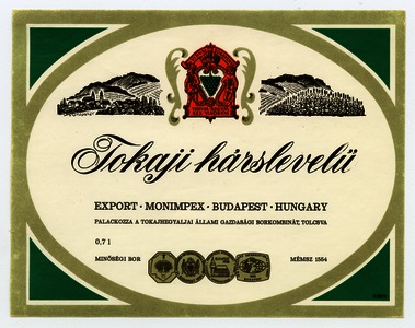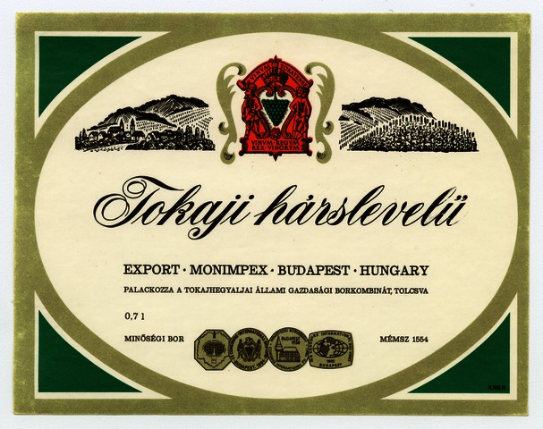 Kun, Zsanett (Digitalizáló): Tokaji hárslevelű boroscímke a Tokajhegyaljai Állami Gazdasági Borkombináttól. (Publikálatlan) (2024)