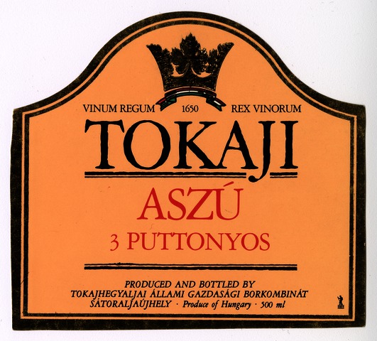 Bortípus: aszú; Termelő neve: Tokajhegyaljai Állami Gazdasági Borkombinát; Termelő címe: Sátoraljaújhely; színes címke
