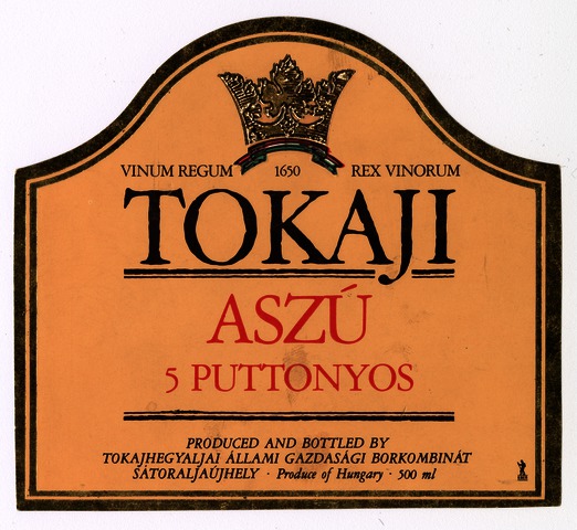 Bortípus: aszú; Termelő neve: Tokajhegyaljai Állami Gazdasági Borkombinát; Termelő címe: Sátoraljaújhely; színes címke