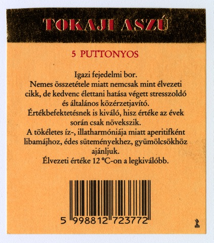 Kun, Zsanett (Digitalizáló): 5 puttonyos tokaji aszú boroscímke a Tokajhegyaljai Állami Gazdasági Borkombináttól. (Publikálatlan) (2024)