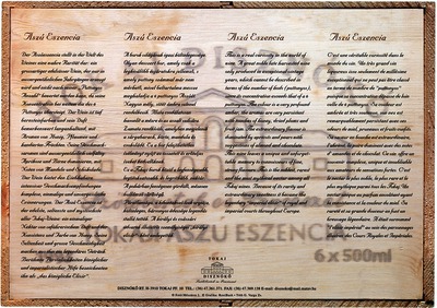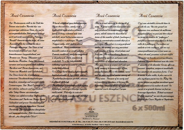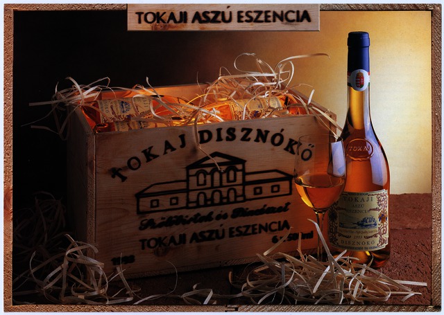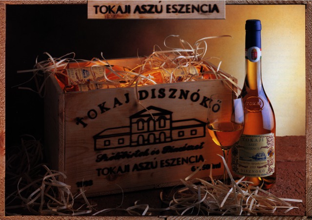 Bortípus: aszú eszencia; Termelő neve: Disznókő Rt.; Termelő címe: Tokaj; Évjárat: 1993; színes címke