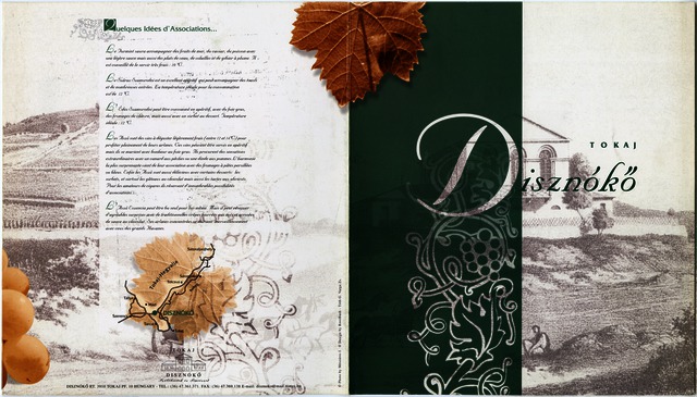 A brosúra kiadójának neve: Disznókő Rt.; A brosúra kiadójának címe: 3910 Tokaj; színes kisnyomtatvány