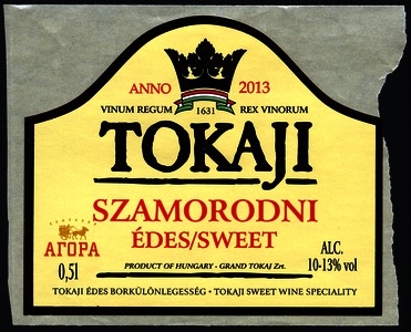 Bortípus: szamorodni ; Termelő neve: Grand Tokaj Zrt.; Évjárat: 2013; színes címke