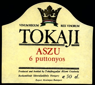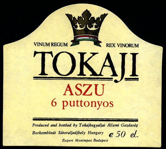 Bortípus: aszú; Termelő neve: Tokajhegyaljai Állami Gazdaság Borkombinát; Termelő címe: Sátoraljaújhely; színes címke