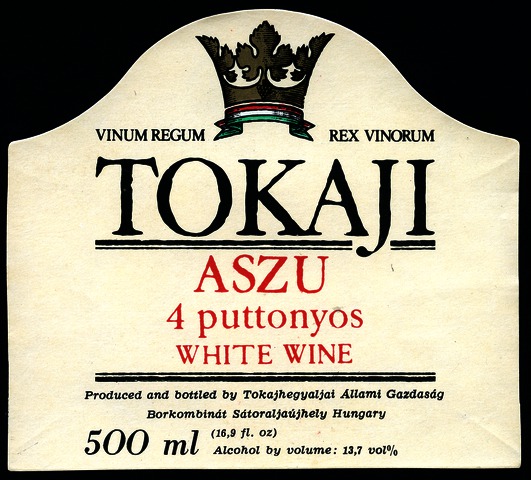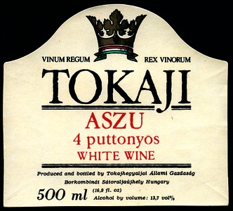 Bortípus: aszú; Termelő neve: Tokajhegyaljai Állami Gazdaság Borkombinát; Termelő címe: Sátoraljaújhely; színes címke