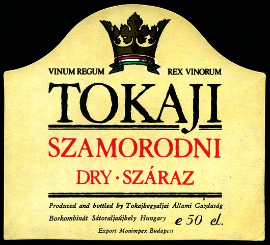 Bortípus: szamorodni; Termelő neve: Tokajhegyaljai Állami Gazdaság Borkombinát; Termelő címe: Sátoraljaújhely; színes címke