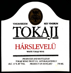 Bortípus: hárslevelű; Termelő neve: Tokajhegyaljai Állami Gazdasági Borkombinát; Termelő címe: Sátoraljaújhely; színes címke