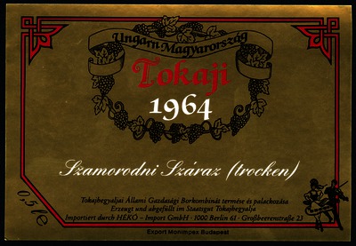 Bortípus: szamorodni; Termelő neve: Tokajhegyaljai Állami Gazdasági Borkombinát; Évjárat: 1964; színes címke