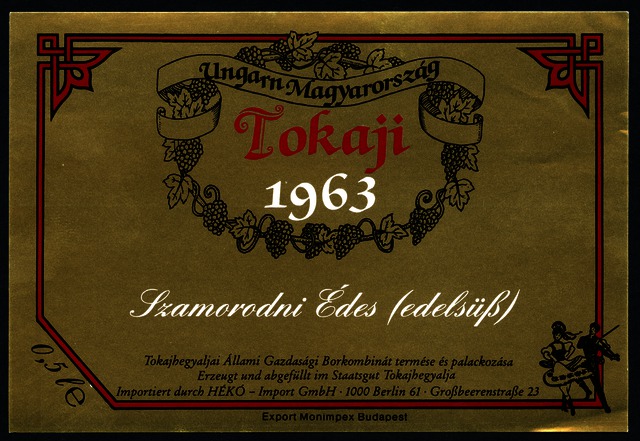 Kun, Zsanett (Digitalizáló): 1963-as export tokaji édes szamorodni boroscímke a Tokajhegyaljai Állami Gazdasági Borkombináttól. (Publikálatlan) (2024)