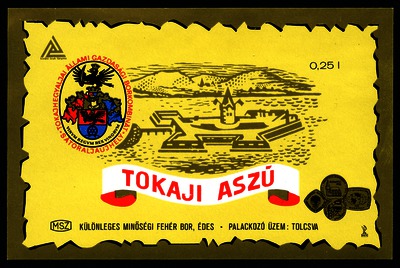 Bortípus: aszú; Termelő neve: Tokajhegyaljai Állami Gazdasági Borkombinát; Termelő címe: Sátoraljaújhely; színes címke