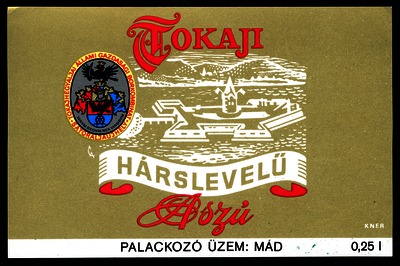 Bortípus: hárslevelű aszú; Termelő neve: Tokajhegyaljai Állami Gazdasági Borkombinát; Termelő címe: Sátoraljaújhely; színes címke