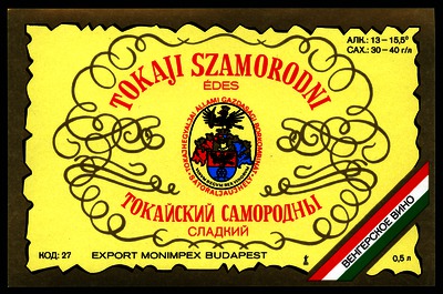 Bortípus: szamorodni; Termelő neve: Tokajhegyaljai Állami Gazdasági Borkombinát; Termelő címe: Sátoraljaújhely; színes címke