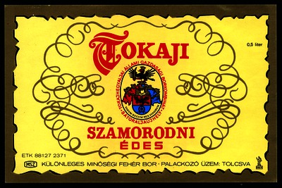 Bortípus: szamorodni; Termelő neve: Tokajhegyaljai Állami Gazdasági Borkombinát; Termelő címe: Sátoraljaújhely; színes címke