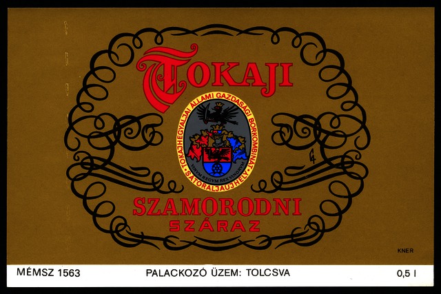 Bortípus: szamorodni; Termelő neve: Tokajhegyaljai Állami Gazdasági Borkombinát; Termelő címe: Sátoraljaújhely; színes címke