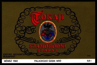 Bortípus: szamorodni; Termelő neve: Tokajhegyaljai Állami Gazdasági Borkombinát; Termelő címe: Sátoraljaújhely; színes címke