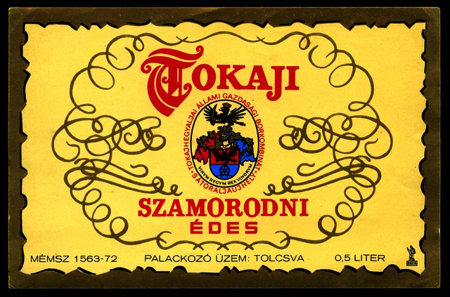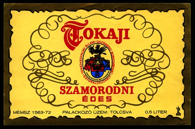 Bortípus: szamorodni; Termelő neve: Tokajhegyaljai Állami Gazdasági Borkombinát; Termelő címe: Sátoraljaújhely; színes címke