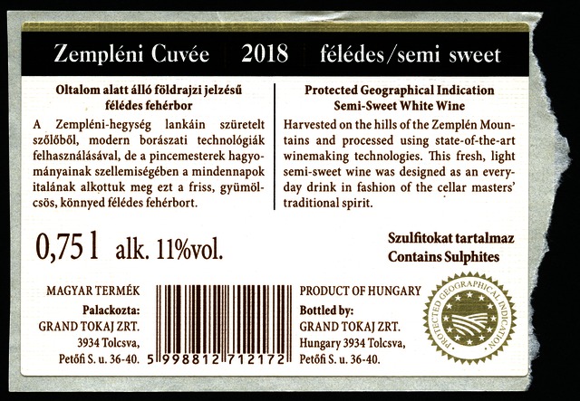 Kun, Zsanett (Digitalizáló): 2018-as zempléni félédes cuvée boroscímke a Grand Tokaj Zrt.-től. (Publikálatlan) (2024)